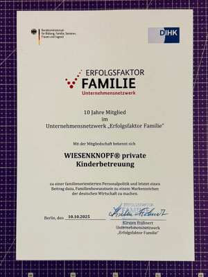 Anerkennung: wir sind seit 10 Jahren Mitglied im Unternehmensnetzwerk @erfolgsfaktorfamilie