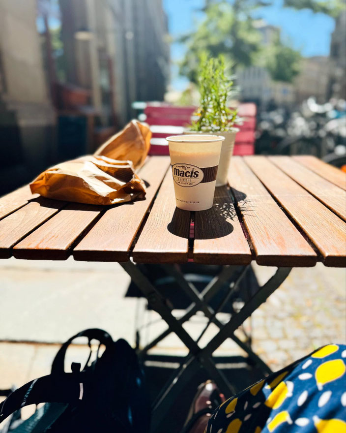 Kaffee in der Sonne. Die Ferienspiele laufen – alles gut organisiert, die Kids glücklich, die Betreuer*innen von uns rocken das Programm „Detektive & Geheimagenten“ Jetzt kurz durchatmen … bevor das nächste Abenteuer startet! #Ferienspiele #BetreuungMitHerz #KaffeePause #detektivmodus #wiesenknopf #kinderbetreuung #leipzig #familie #familieleipzig #kinderleipzig #kinder #sommerferien