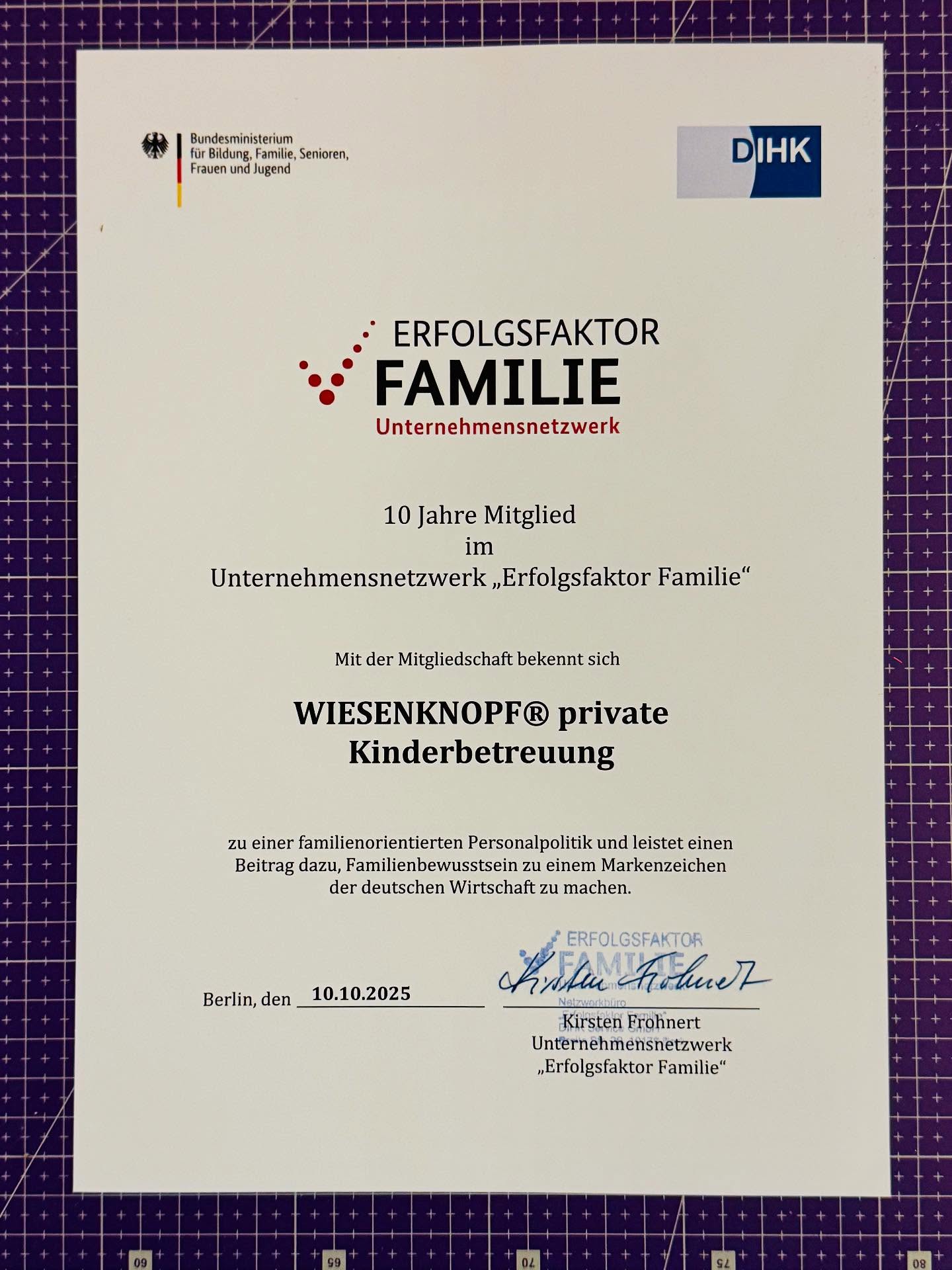 10 Jahre familienfreundlich – und stolz drauf! Wir freuen uns riesig über diese besondere Anerkennung: wir sind seit 10 Jahren Mitglied im Unternehmensnetzwerk @erfolgsfaktorfamilie Ein Netzwerk, das sich für eine familienorientierte Personalpolitik starkmacht – und genau das leben wir jeden Tag. Denn Familie und Beruf gehören für uns zusammen. Danke an alle, die WIESENKNOPF zu dem machen, was es ist: Ein Ort mit Herz, Wertschätzung & Zusammenhalt. #ErfolgsfaktorFamilie...